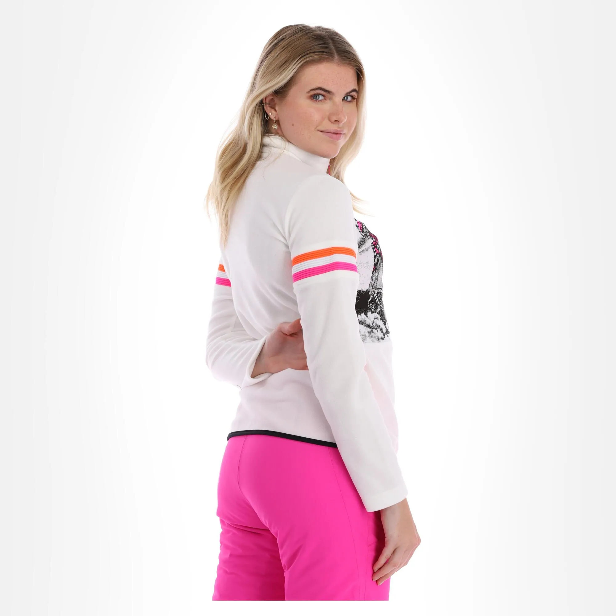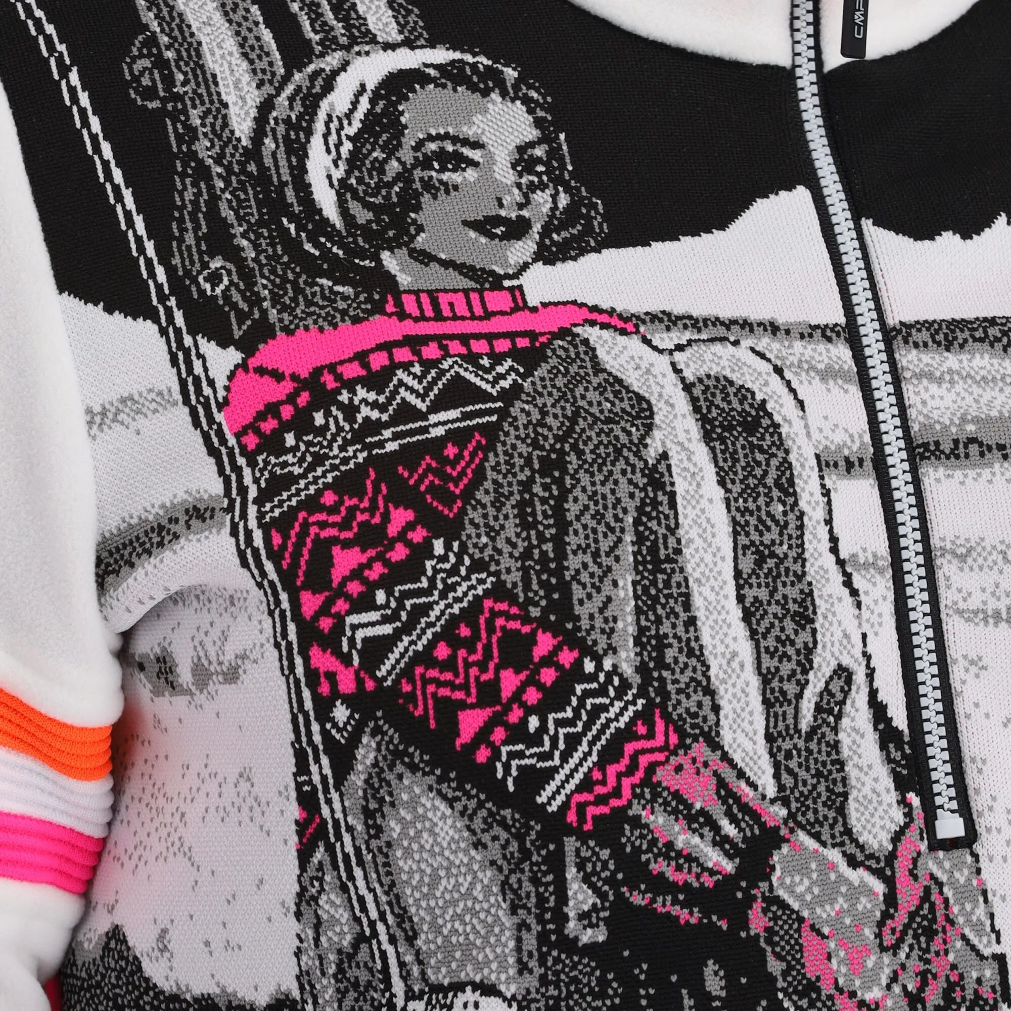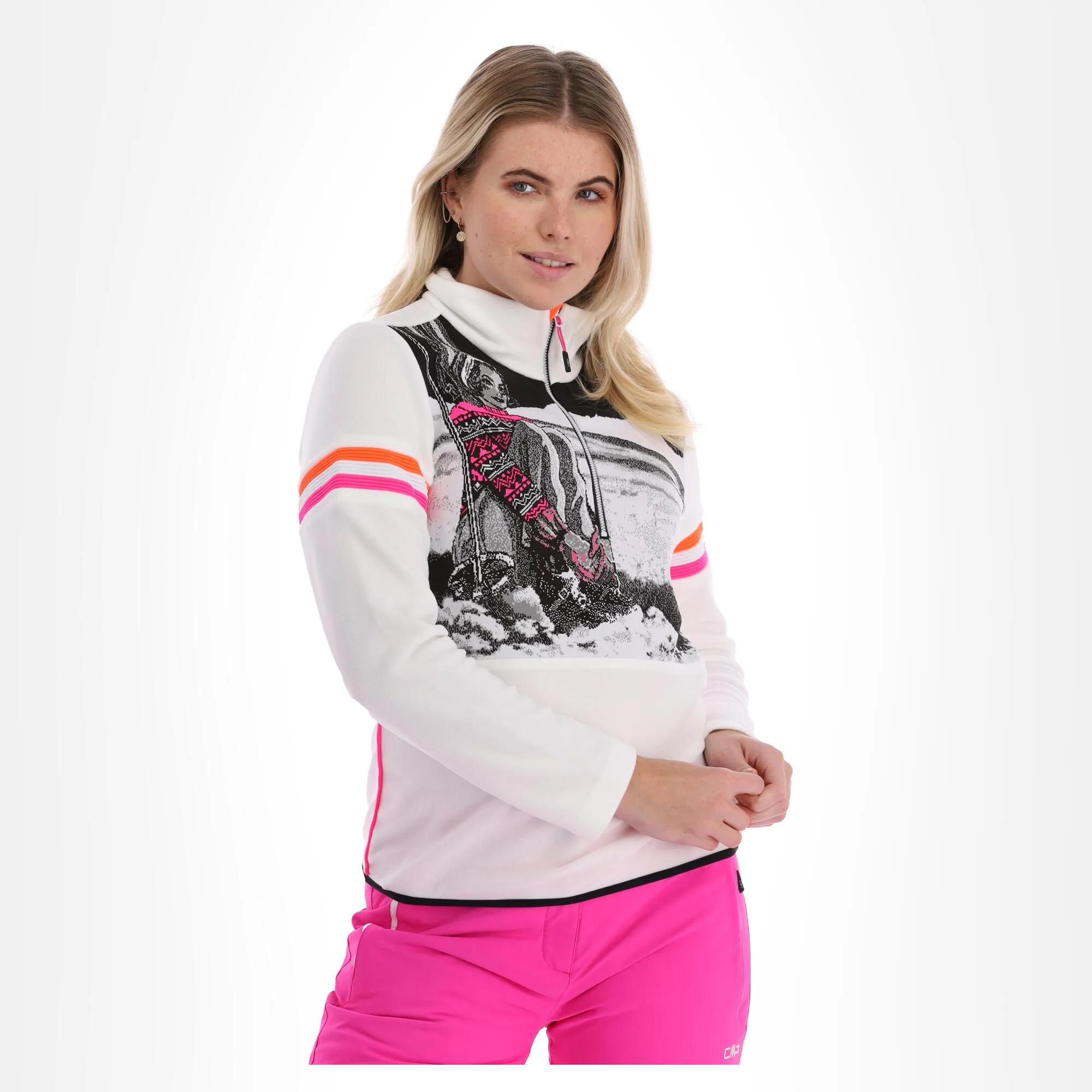 Deze leuke skipully van CMP is mooi afgewerkt met een vintage print aan de voorkant. Het arctic fleece waar de skipully van gemaakt is, is een stevig en zacht materiaal. De skipully heef een regular fit. Met de halve rits kun je makkelijk je warmte regelen, zodat je altijd comfortabel blijft. Perfect als twee laag over je thermo ondergoed. De gebruikte kleuren maakt dat de pully makkelijk te combineren is met verschillende kleuren skibroek. Een mooi en heerlijk kledingstuk!