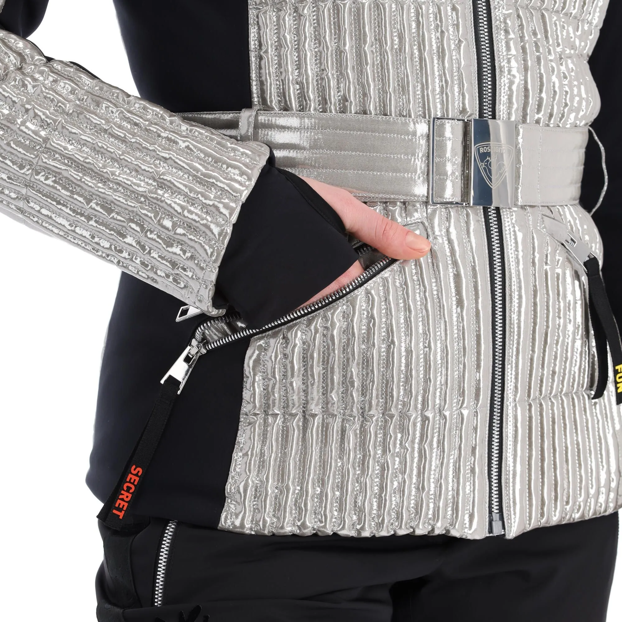 Met de Maddy-Star van Rossignol combineer je prestaties en mode. Herontworpen ter ere van de 20e verjaardag van de beroemde samenwerking tussen Jean-Charles de Castelbajac en Rossignol, het Maddy Star Silver damesjack toont een slank silhouet geaccentueerd door een oversized sterrenkraag. De ademende, lichtgewicht isolatie houdt de koude wind buiten en de waterafstotende afwerking stoot lichte sneeuw af, zodat je droog blijft. Stretch zijpanelen zorgen ervoor dat de jas met je meebeweegt voor een natuurlijke bewegingsvrijheid. Dankzij meerdere zakken met rits heb je je skipas en andere benodigdheden altijd bij de hand. Deze modieuze jas laat je stralend van de piste afgaan.